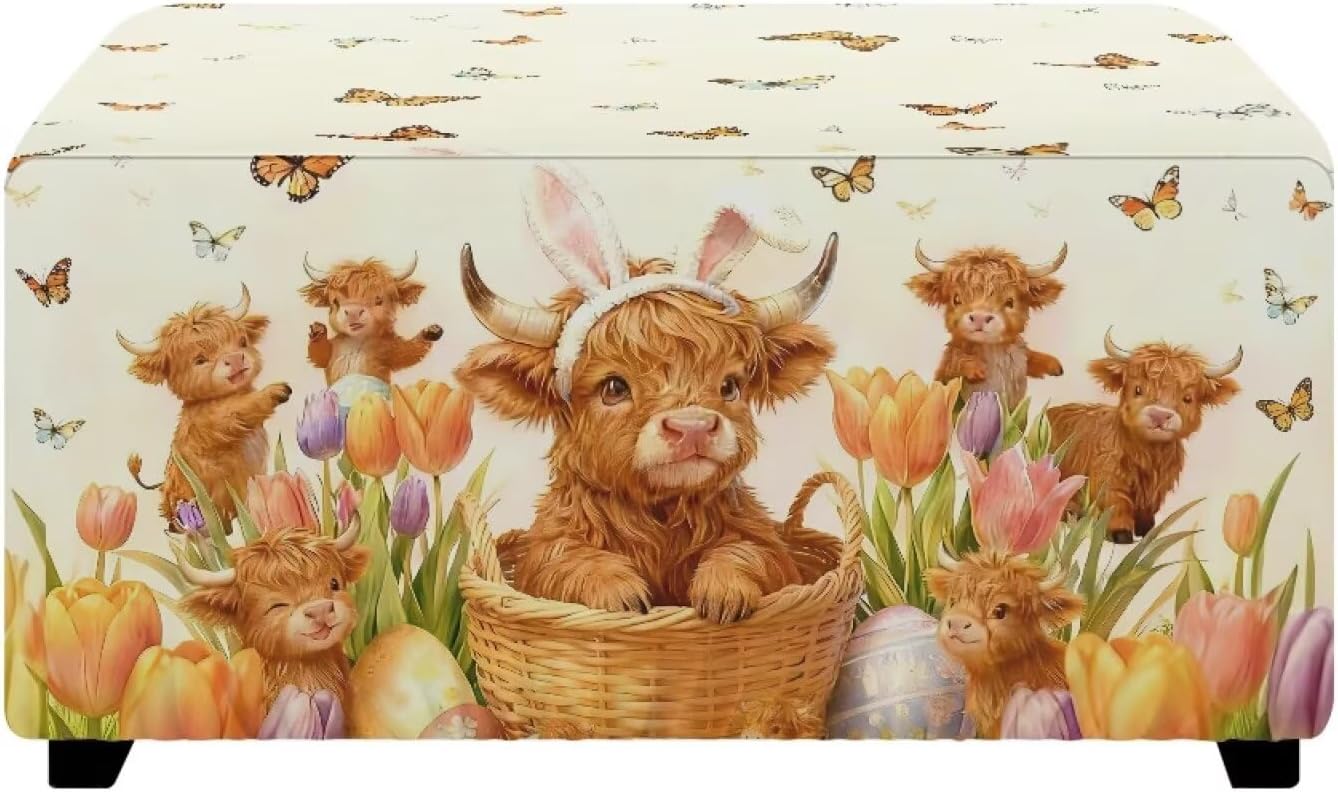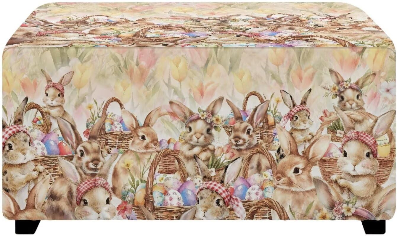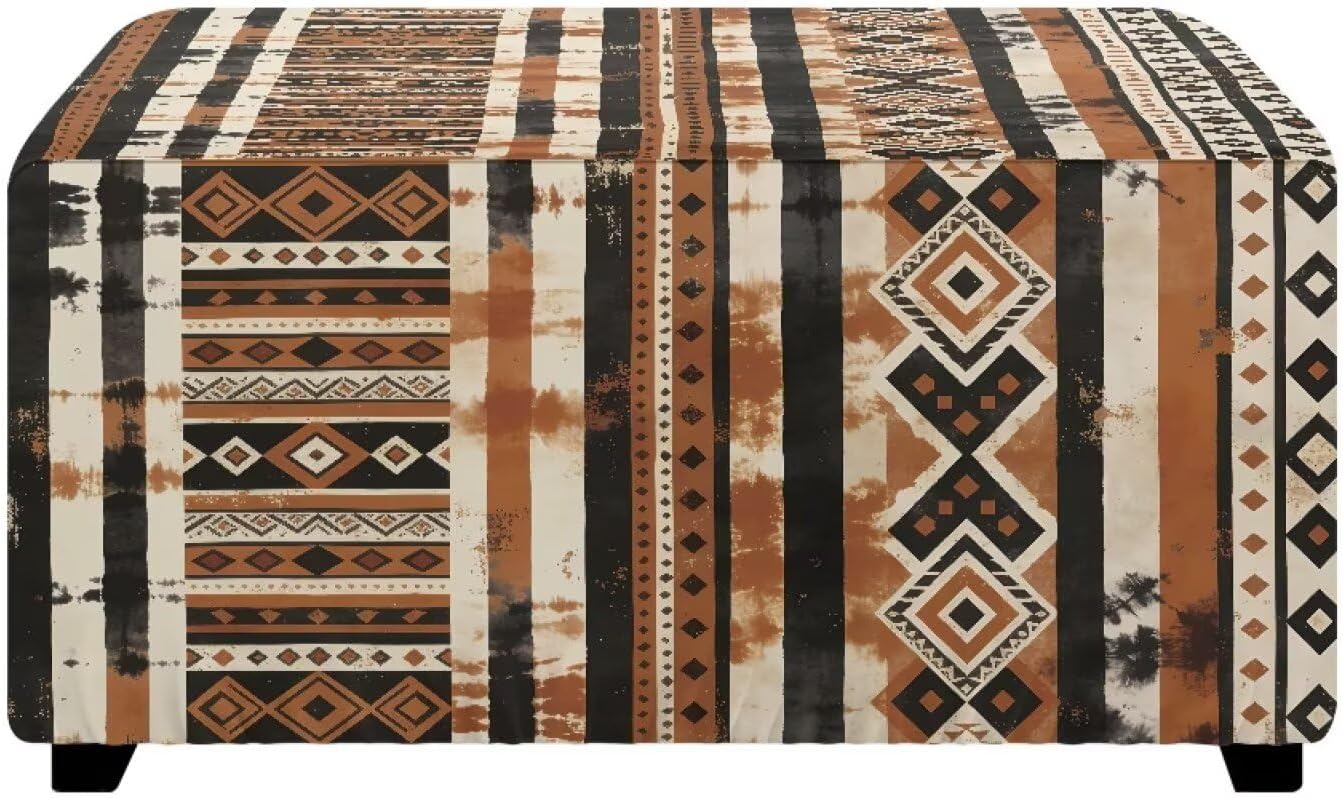 Stretch Footstool Cover Material: Polyester fabric Size Choose: M: Length 30 inches width 24 inches height 15 inches Tuba: Length 33 inches width 30 inches height 15 inches Various pattern styles for you to choose from to decorate your stool