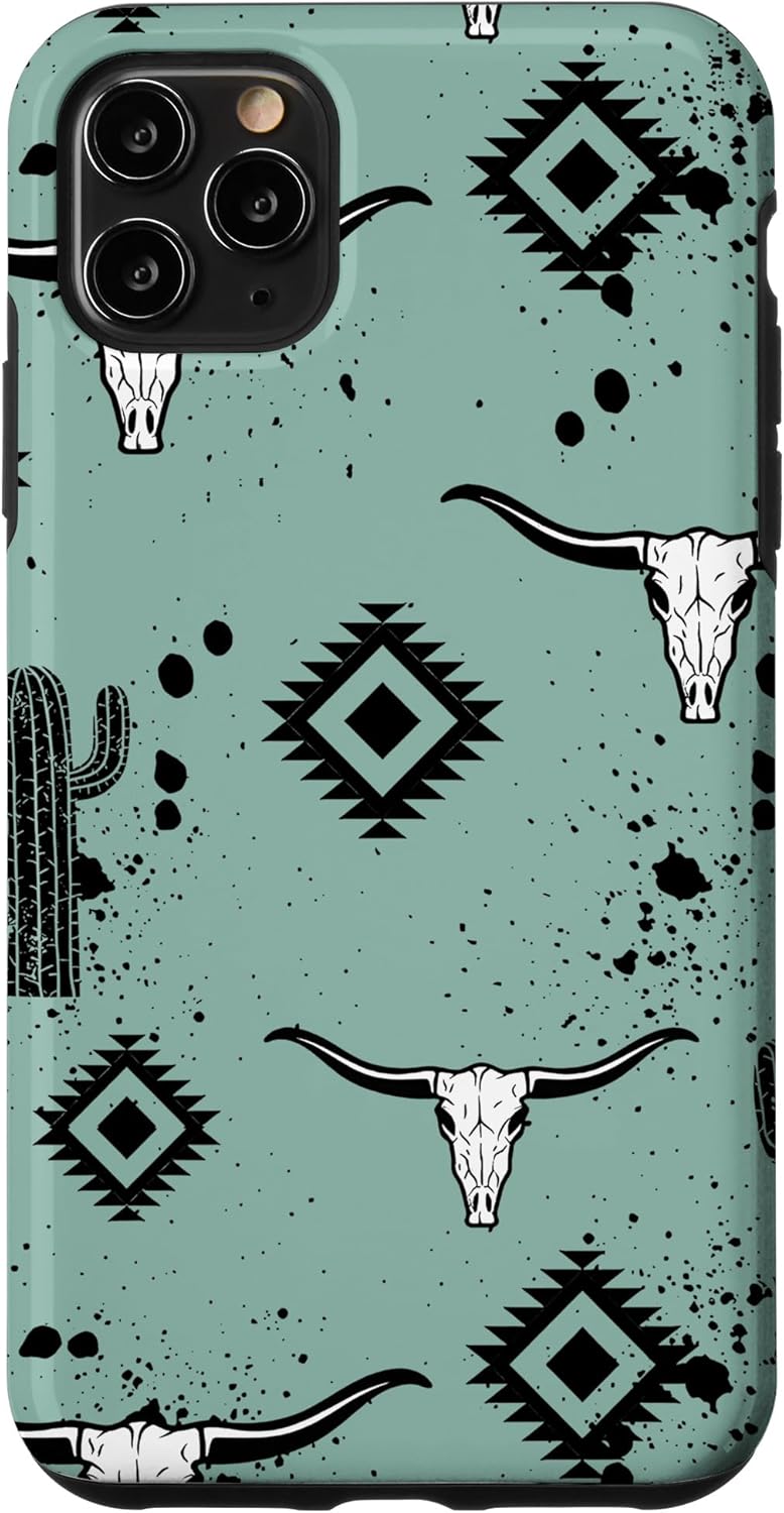 Western Country Aztec Bull Skull Cactus Cacti Pattern Case for iPhone 16