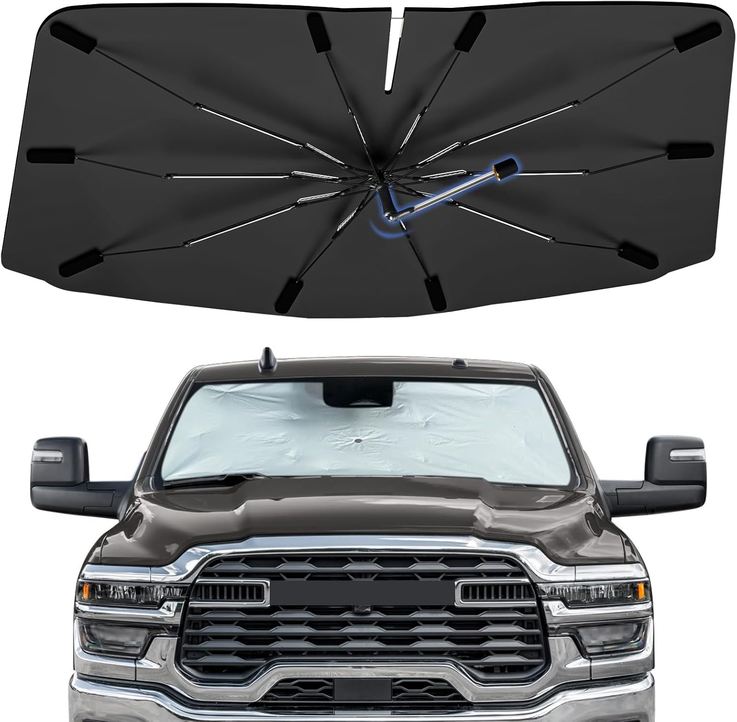 • Interior Protection: With UV-resistant material, Bocvam vehicles umbrella sun shade prevents dashboards, steering wheels, and screens from aging due to prolonged exposure to sunlight