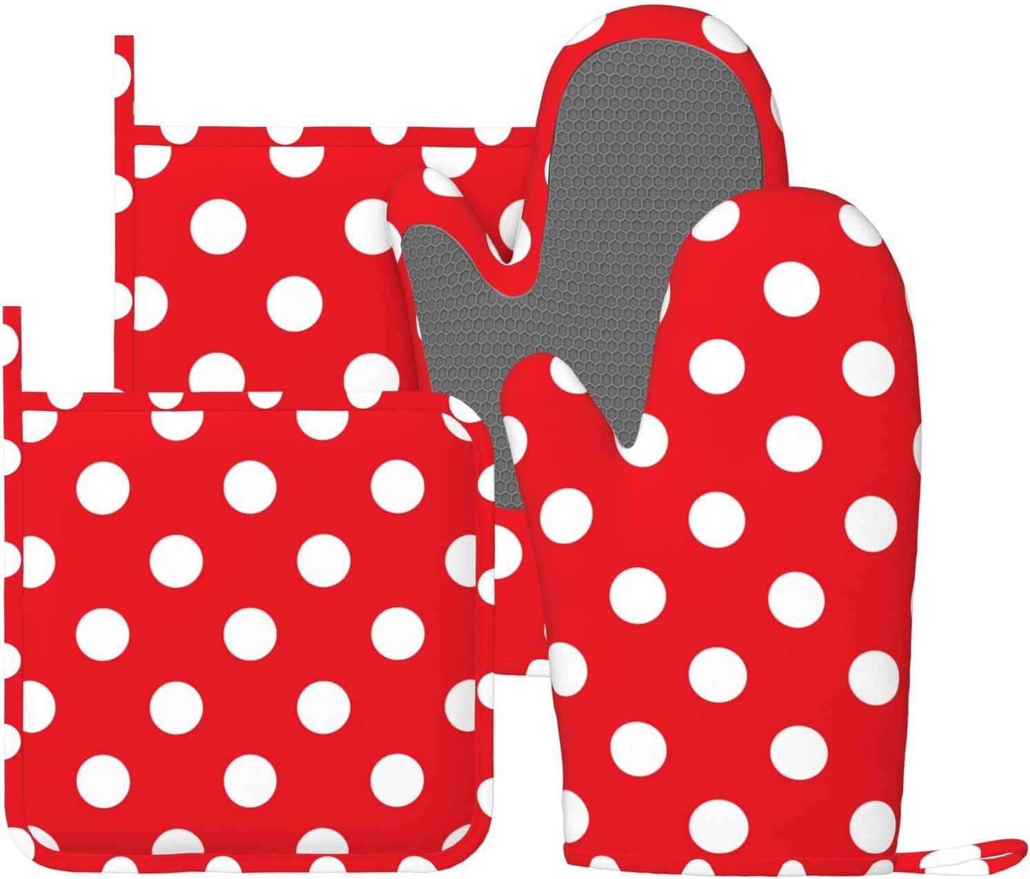 Package includes: You will get 2 Oven Mitts and 2 PotholdersMaterial: Polyester (printed part) + silicone surface + quilted cotton (pocket lining), soft and thick.Heat resistant up to 392 F/ 200CNon-Slip & Flexible: The textured silicone design on the oven mitt offer a durable and non-slip grip design that provides a secure hold on pots and pans. Oven mitts protect your hand, and pot holders can hold hot pots, pans, plates, trays, and baking tools to prevent burns on the table.Reasonable Size: The size of the oven mitt is 11 X 7 inch, perfectly in the hands of men and women. Extra long length protects wrists and forearms while cooking and baking. Pot holder is 8 X 8 inch, Perfect for holding hot pots, pans, plates, bowls, and trays.Easy Storage: Lanyard design, easy to organize storage, make the kitchen clean and tidy.Easy to clean, sturdy, machine washable.Ideal Gift: The oven mitts with fashion patten is cute and add some fun to our kitchen decor. Perfect for grilling, baking, cooking, serving, outdoor barbecue, fireplace, and more cooking tools. Great gifts for a chef or baker, and an ideal kitchen gift for your family or friend who loves baking or cooking.Notice:-Due to the material properties of the oven gloves, the actual printing effect will be slightly different from the picture-Gloves cannot be used on open flames, which can damage the gloves.