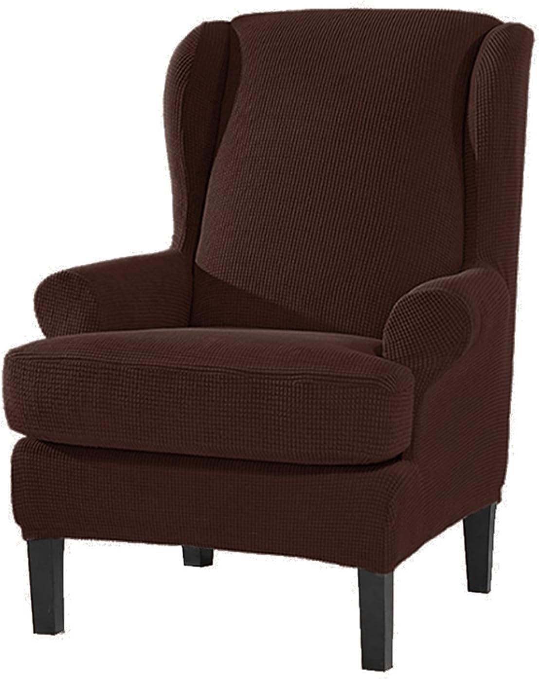 This 2-piece wing chair cover will give your sofa a new look and is perfect for families with children and pets. Features of the wing chair cover:The wing chair cover consists of 2 parts, one is the base cover and the other is the cushion cover. It can cover the wing chair perfectly.The base of the cover and the cushion cover are sewn with an elastic band at the bottom to fit your chair perfectly and can be better adapted to the size and shape of your sofa.The wing chair cover not only protects your chair from stains and wear and tear. It extends the life of your wing chair.Easy to put on and take off, simply place the excess fabric in the gap between the back and the seat for the perfect look.Protecting your armchair from food and drink spills, pet hair and mess, the cover can be easily machine washed.Our winged chair covers make great birthday gifts for mum, dad, friends for holidays or birthdays. Suitable size:Wing chair length: 69-80cm (27.5-31.3in)Wing chair width: 80-92cm (31.5-36.2in)Wing chair height: 95-110cm (37.4-43.3in) Suitable for most standard wing chairs and sofas with slits. Can be padded with extra fabric. Package includes:1x wing chair cover1x cushion cover Notes:The 2 piece set only includes the chair cover and cushion cover, it does not include the armchair and cushion.If your wing chair does not have any seams to fill in the excess fabric, it may not be perfect.Sizes are measured by hand, please allow for slight deviations within 1-2cm.All pictures are taken in real life, but there may still be a slight colour variation due to the monitor or lighting.
