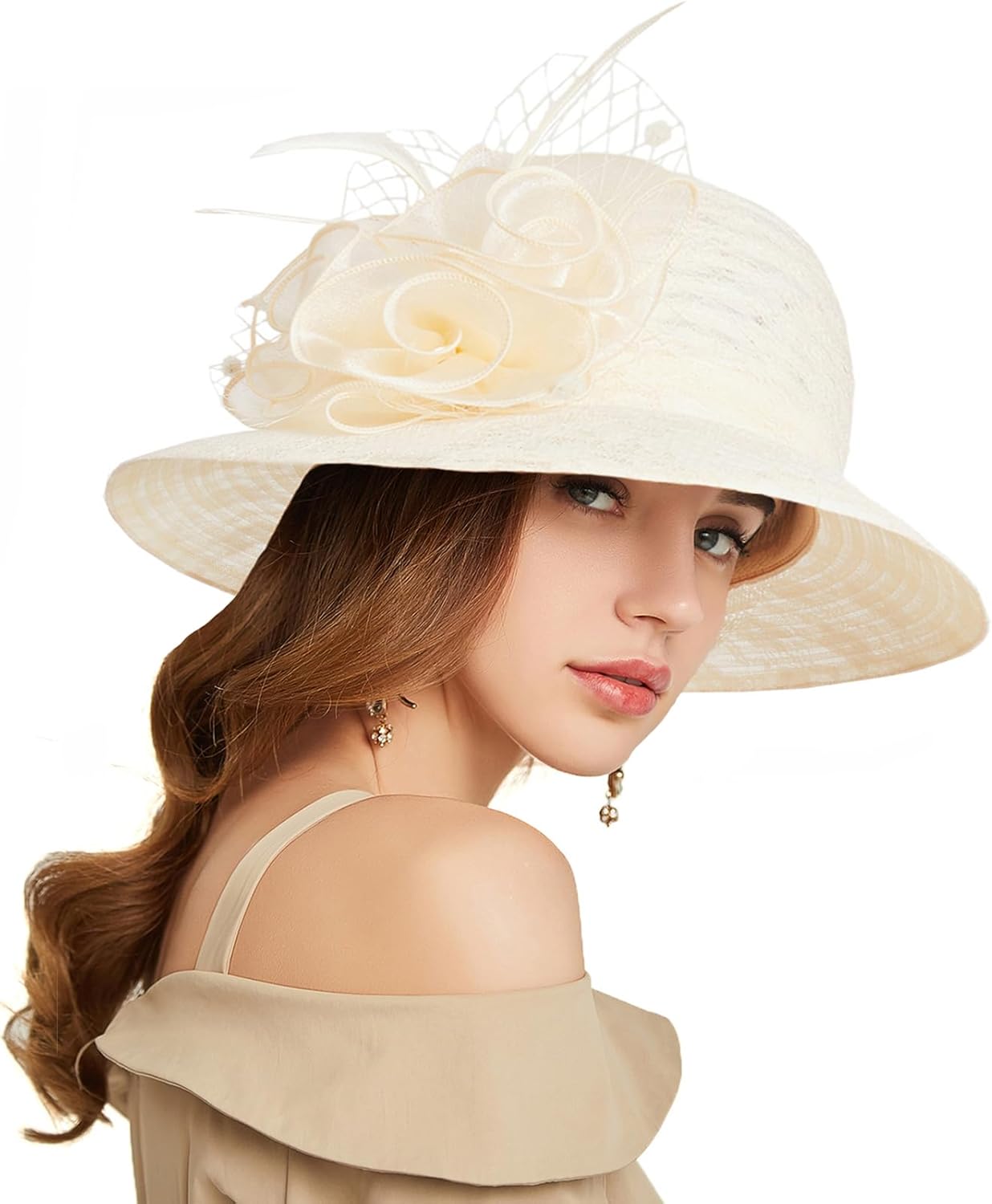 Women's Kentucky Derby Church Dress Hat Wide Brim Leaf Flower Bridal Shower Hat