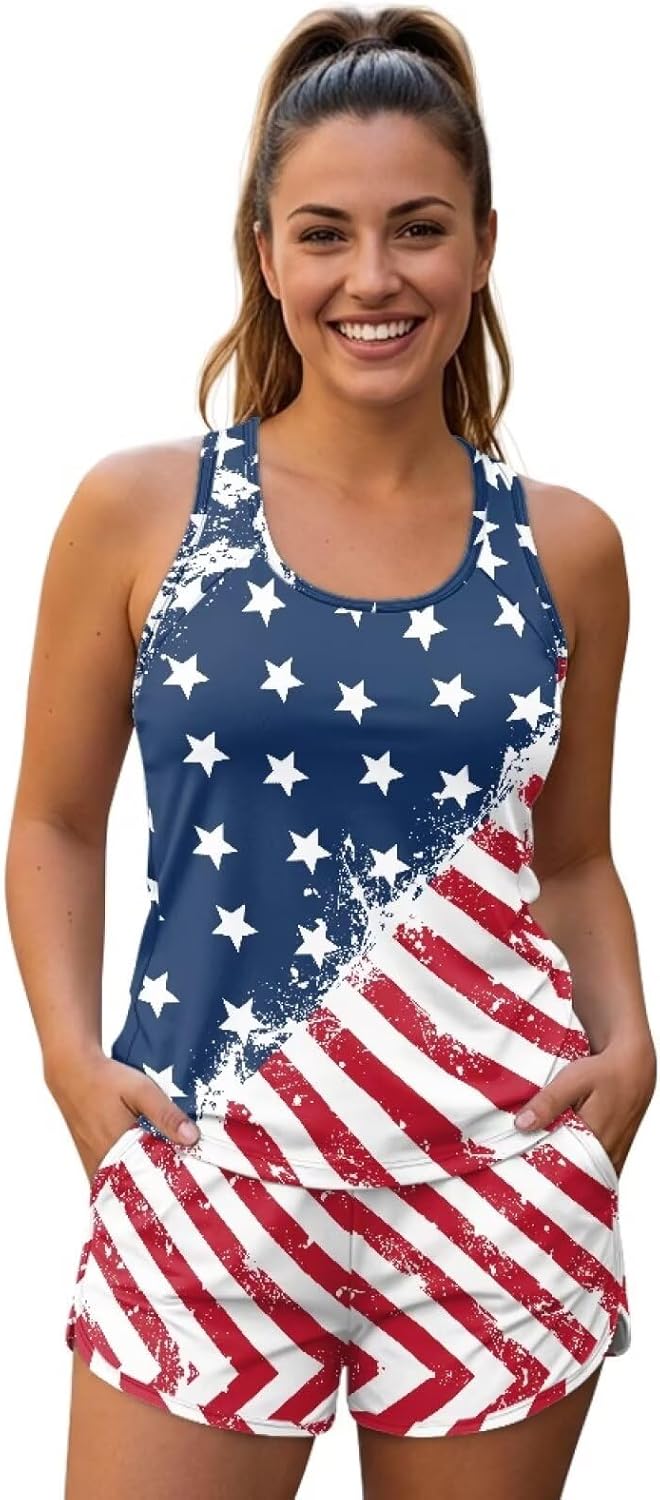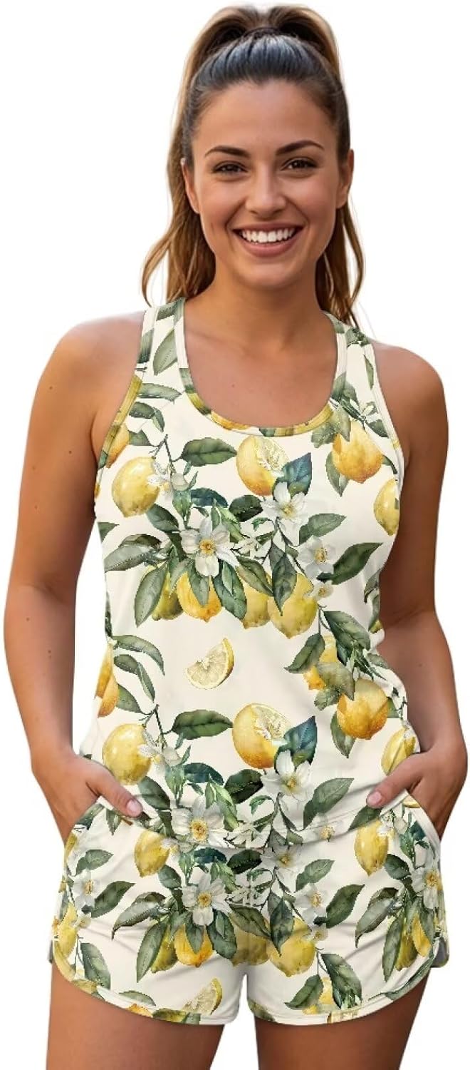 Yaosyuorus Women's Summer Tankini Swimsuits,Tummy Control Two Piece Bathing Suits with Pockets,Tank Top and Boyshort Swimwear High Waisted Sporty Swim Shorts for Women Size S-6XL [Product Information]: Material: Polyester + Spandex Size Detail: S: Length: 55.87cm/22in, Bust: 87.62cm/34.5in, Waist: 71.11cm/28in, Hip: 96cm/37.8in M: Length: 57.65cm/22.7in, Bust: 92.2cm/36.3in, Waist: 75.43cm/29.7in, Hip: 98.29cm/38.7in L: Length: 59.18cm/23.3in, Bust: 96.51cm/38in, Waist: 80cm/31.5in, Hip: 102.86cm/40.5in XL: Length: 60.7cm/23.9in, Bust: 101.6cm/40in, Waist: 83.8cm/33in, Hip: 106.6cm/42in 2XL: Length: 62.22cm/24.5in, Bust: 105.7cm/41.6in, Waist: 88.9cm/35in, Hip: 111.75cm/44in 3XL: Length: 64cm/25.2in, Bust: 114.3cm/45in, Waist: 100cm/39.4in, Hip: 118.6cm/46.7in 4XL: Length: 65.53cm/25.8in, Bust: 118.1cm/46.5in, Waist: 106.17cm/41.8in, Hip: 123.7cm/48.7in 5XL: Length: 67.05cm/26.4in, Bust: 118.1cm/46.5in, Waist: 112.3cm/44.2in, Hip: 128.8cm/50.7in 6XL: Length: 68.57cm/27in, Bust: 127cm/50in, Waist: 118.6cm/46.7in, Hip: 132.8cm/52.3in [Boyshorts with Two Pockets]: Our swimsuit bottoms feature pockets on both sides, perfect for storing keys, phones, sunglasses, and other personal items, freeing up your hands. The loose, soft cuffs allow for freedom of movement and prevent tightness from chafing against the skin. The curved leg design further expands the range of motion, ensuring comfort even during vigorous activity [Thoughtful design]:The swimwear set features bound edges on the neckline, cuffs, and leg openings to prevent fraying and ensure long-term durability, while also reducing friction against the skin and guaranteeing comfort. The swimsuit top features a sporty vest design at the back, providing stable support and ensuring freedom of movement. Our design prioritizes the customer experience, providing you with an exceptional experience