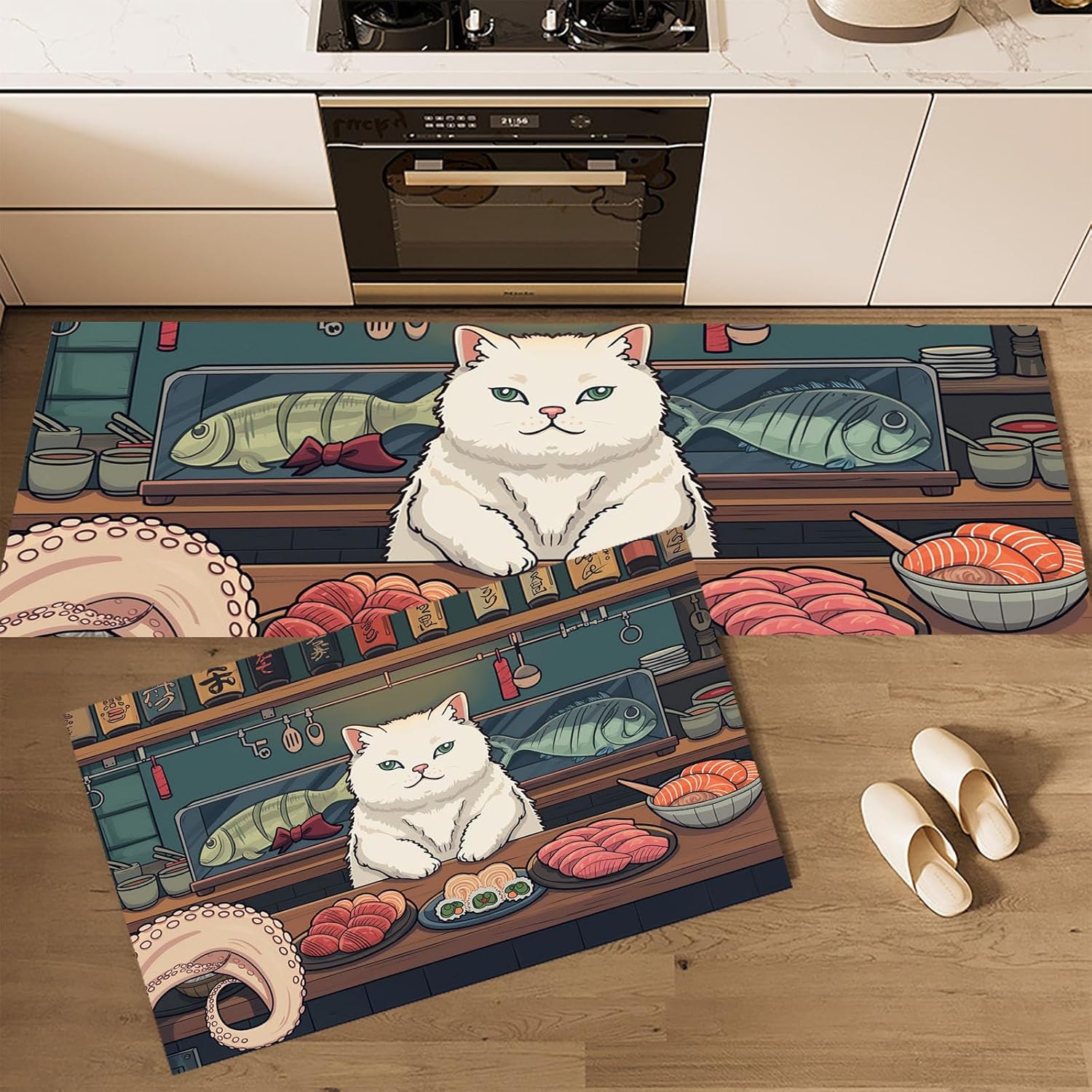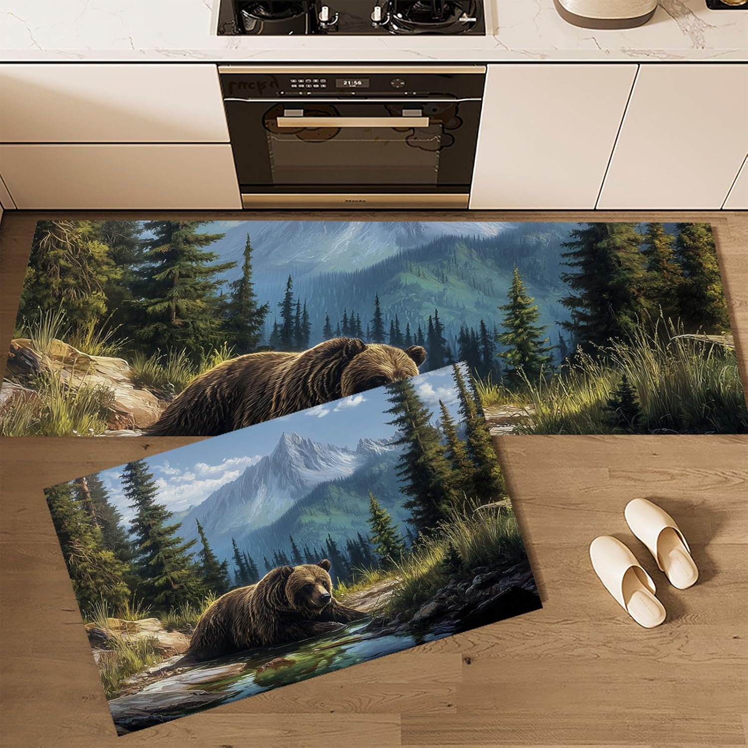 Bringen Sie neuen Schwung in Ihre Küche mit unserem stilvollen 3D-Druck Küchenteppich 2er Set – rutschfest, hochsaugfähig und farbbeständig, ein echter Blickfang mit praktischem Nutzen✅ Produktmerkmale im Überblick: 2-teiliges Küchenteppich-Set Ideal als Küchenläufer oder Spülmatte, lassen sich die Teppiche einzeln oder kombiniert verwenden, um verschiedene Bereiche wie Spüle, Herd oder Durchgang perfekt abzudecken.Hochwertiges MaterialGefertigt aus robuster Polyesterfaser, überzeugt das Set durch hohe Wasseraufnahme, Langlebigkeit und rutschhemmende, die das verschüttete Wasser definitiv absorbiert und die Küche trocken hält.Rutschfest & SicherDie Rückseite der Küchenmatten ist rutschfest beschichtet und sorgt so für sicheren Halt auf Fliesen, Laminat, Holz und mehr.PflegeleichtDie Matten sind sowohl für Handwäsche als auch für Maschinenwäsche geeignet, trocknen schnell und behalten ihre Form – ideal für den täglichen Einsatz in stark frequentierten Bereichen.Vielseitig einsetzbarOb in der Küche, im Badezimmer, im Wohnzimmer, Büro oder sogar im Außenbereich – diese Bodenmatten passen sich jeder Umgebung an.Dekorativ & praktischDas Einzigartig Muster passt sich problemlos jedem Einrichtungsstil an, schützt Ihre Böden vor Feuchtigkeit und verleiht Ihrem Zuhause eine warme Atmosphäre.📦 Lieferumfang:2 x Küchenteppich Reinigungsmethode:--Die Küchenmatte kann maschinen- und handgewaschen werden.--Es wird empfohlen, sie von Hand zu waschen, um die Lebensdauer zu verlängern.--Sie können den Staub auf dem Küchenteppich mit einem Staubsauger reinigen.⚠️ Hinweis & Warnung:Bitte beachten Sie, dass es aufgrund manueller Messung zu leichten Größenabweichungen kommen kann.