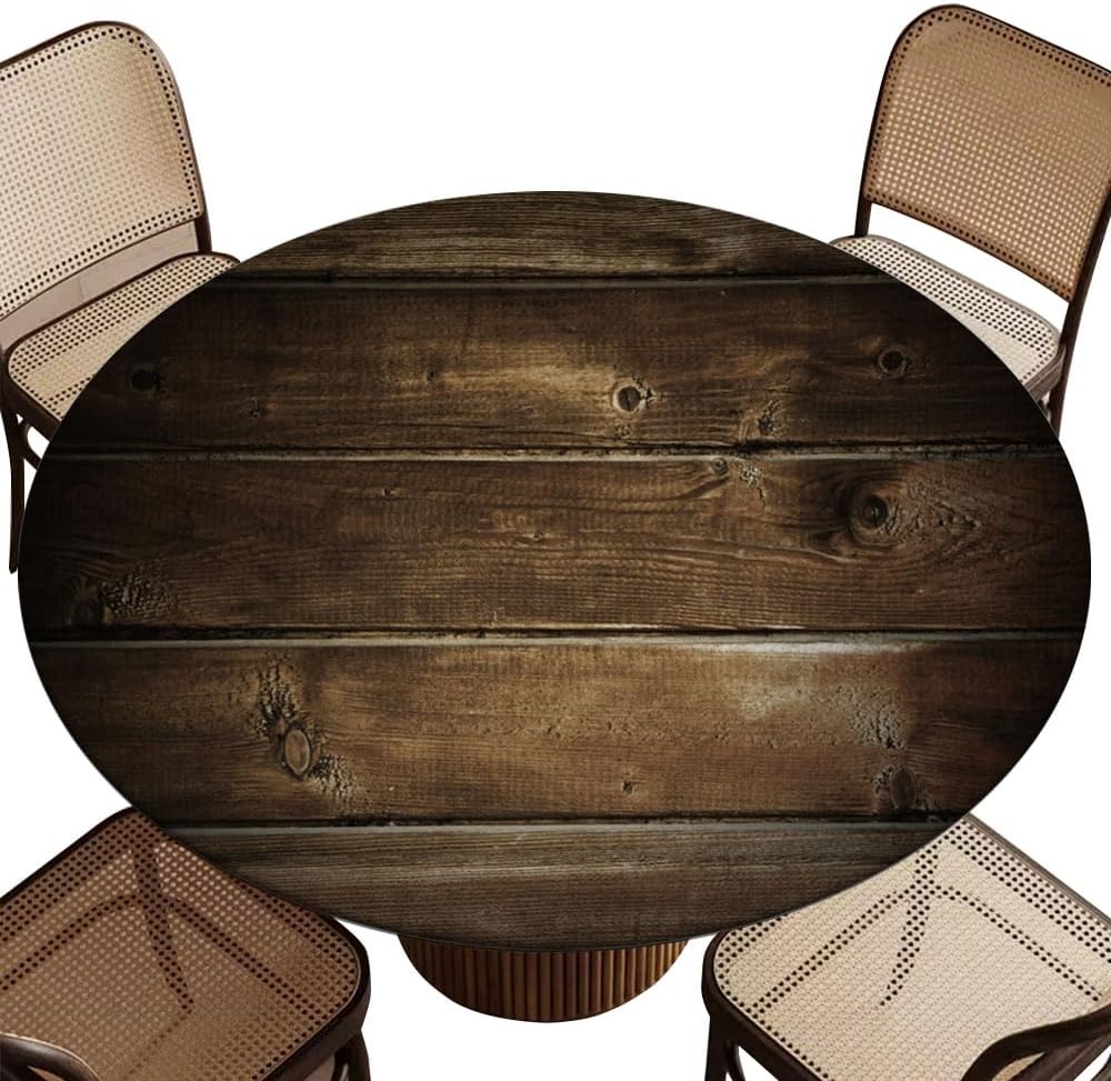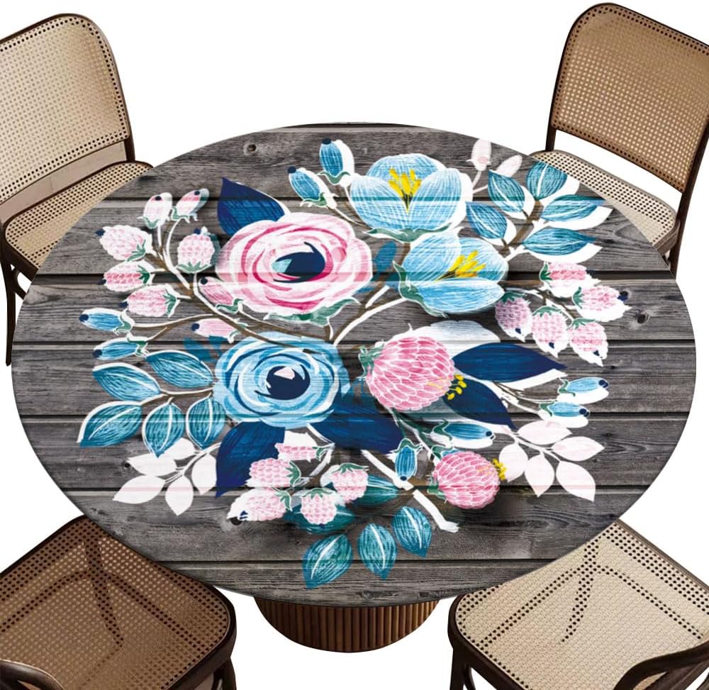 GUISOEI Fitted Round Tablecloth with Elastic Edge Sea Items On Turquoise Wood Texture Washable Table Cover Fits for Circle Table, 10 Sizes