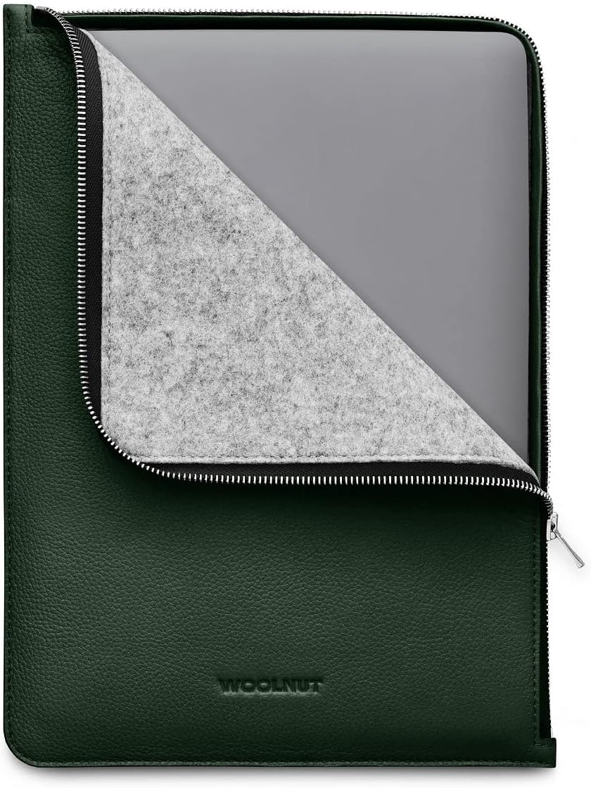 Woolnut Leather & Wool Folio Zipper Sleeve Case Cover, for MacBook Pro 15 inch - Green