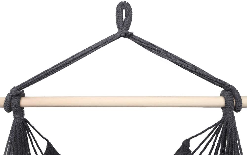 Introductions: When going camping, people will take a tent, because it is one of indispensible accessories. In the tent, people could not feel the nearest nature, because it isolates them from annoying insects as well as nature. But to our delight, the Tassel Plus Pillow Hanging Chair can solve the problem of tent. The air chair's two ends could perfectly be hung on branches, over the earth a quite distance. You can enjoy charming sunshine in the comfortable air chair, stretching your body at full length and feeling free from gravity. That is totally a different feeling from bed at home. What's more, made up with high quality lightweight material, the air chair is easily to carry and store. Such a perfect hanging chair , why not have a try? Features: 1. Suitable for outdoor use 2. Lightweight and convenient to carry or store 3. Easy to hang and assemble 4. Lightweight and firm, very comfortable 5. Perfect for backyard, camping, hunting, hiking, traveling, etc 6. Stretches for your full body length so you rest from head to tow Specifications: 1. Material: Polyester Cotton (40% Cotton, 60% Polyester) 2. Color: Gray 3. Packaging: (37.8 x 5.91 x 5.91)" / (96 x 15 x 15)cm(L x W x H) 4. Sticks: 95*3.3 5. Fabric: 120*150cm 6. Pillow: 42*42cm (Monochrome Cloth Like Hanging Chair), With Tassels (Cloth With The Same Colour) 7. Weight: 5.95lbs / 2.7kg 8. Load Bearing: 264.55lbs / 120kg Package Includes: 1 x Hanging Chair