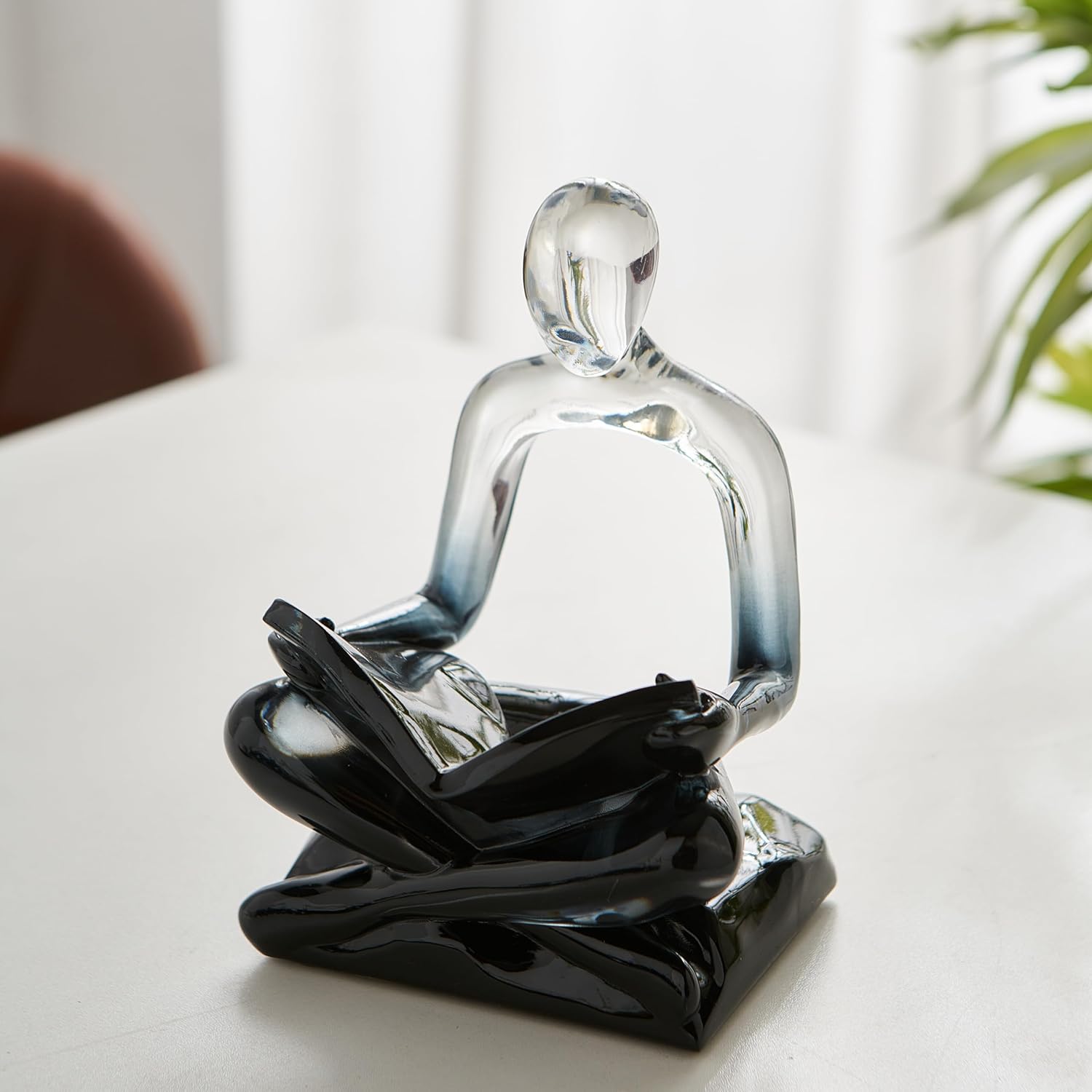The resin abstract figure sculpture works have two postures - one shows the meditation posture, and the other shows the reading posture - reflecting the essence of abstract art. The products are suitable for various home styles, from modern to eclectic. They can be placed on tables to stimulate attention, on shelves as decorative highlights, or in meditation spaces to achieve tranquility. The stable black base ensures that they remain upright, while its compact size makes it suitable for any room layout. These sculptures are easy to clean and will maintain their stunning appearance, making them both a personal decoration pleasure and a thoughtful gift for friends and family who love art