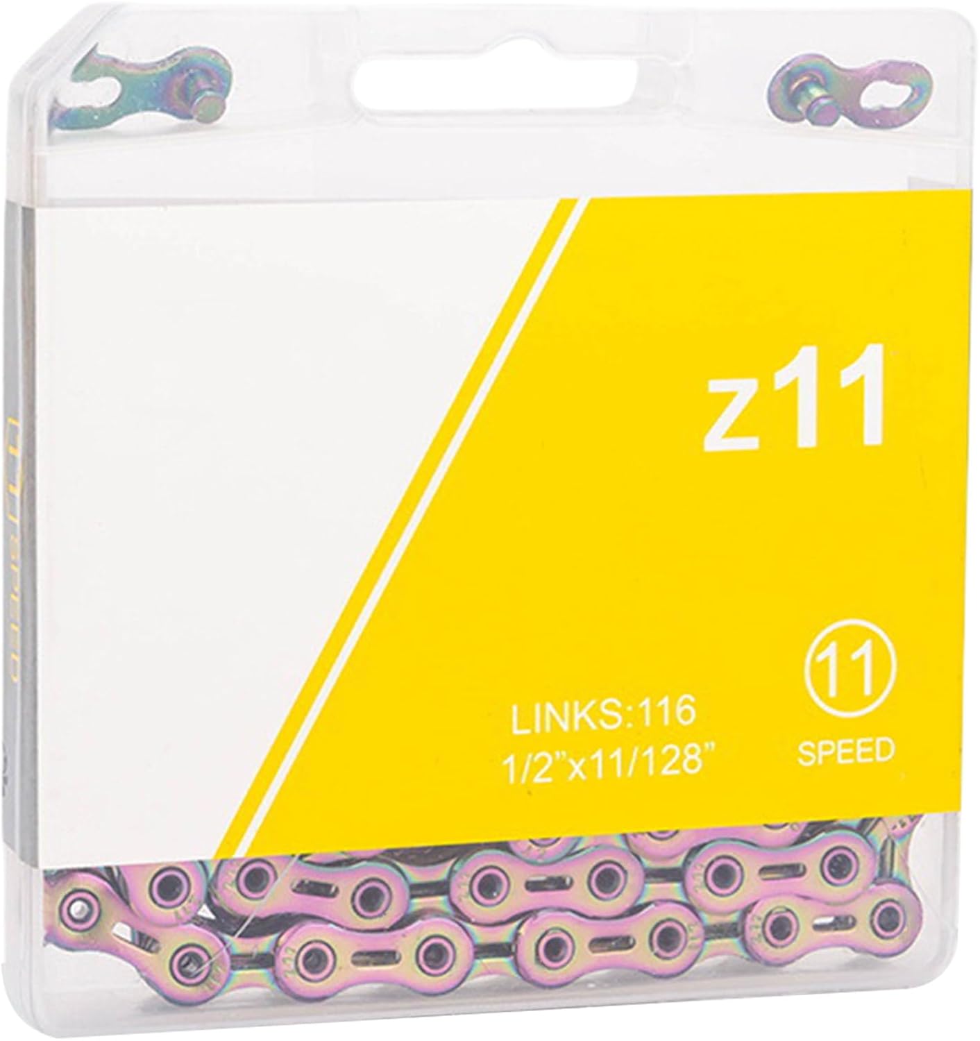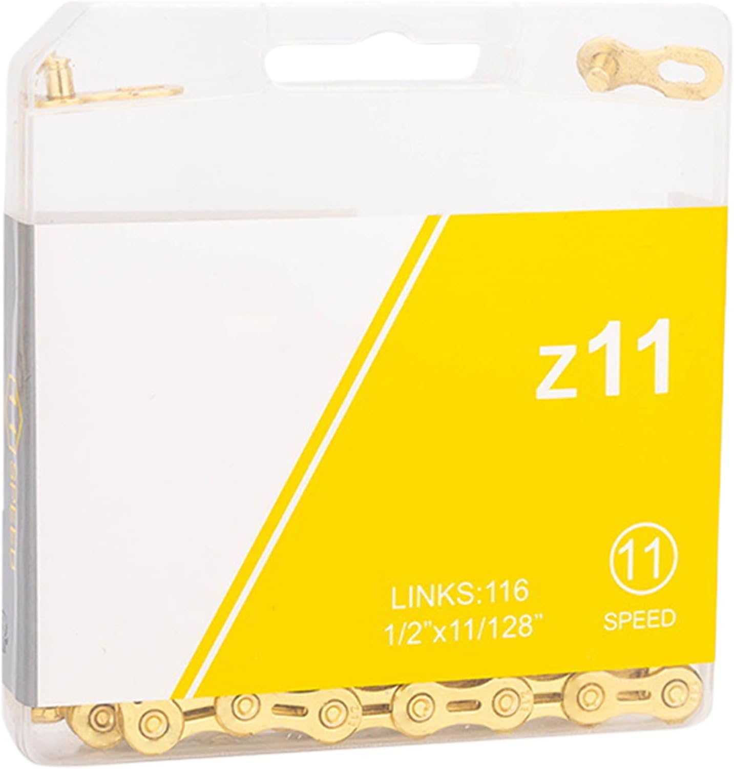 11 Speed Bicycles Chain Reusable Alloys Steel Bike Chain Link 116 Link Mountain Road Bike Chain Replacement PartFeatures:116 Link, 1/2x11/128Inch, Suitable for most 11 Speed Bike Chain.Make from Alloys steel, antirust, anticorrosion, and Enduring.Appearance lubrication treatments, smooth gear shifting, low frictions and none noise.With buckles, easy to disassemble, easy to and reusable.Suitable for mountain bikes, road bikes, fold bikes.Specifications:Materials: Alloys steelType: 11 speedStyles: Silver/Gold/Color/Silver Half Hollow/Gold Half Hollow/Color Half Hollow/Silver Full Hollow/Gold Full Hollow/Color Full HollowSize: as shown in the picturePackage Includes:1pc 11 Speed Bicycles ChainNote:Please allow 1-2cm errors due to manual measurement, make surely that you not mind before order. Due to difference between different monitors, the picture may not reflect the actual color.