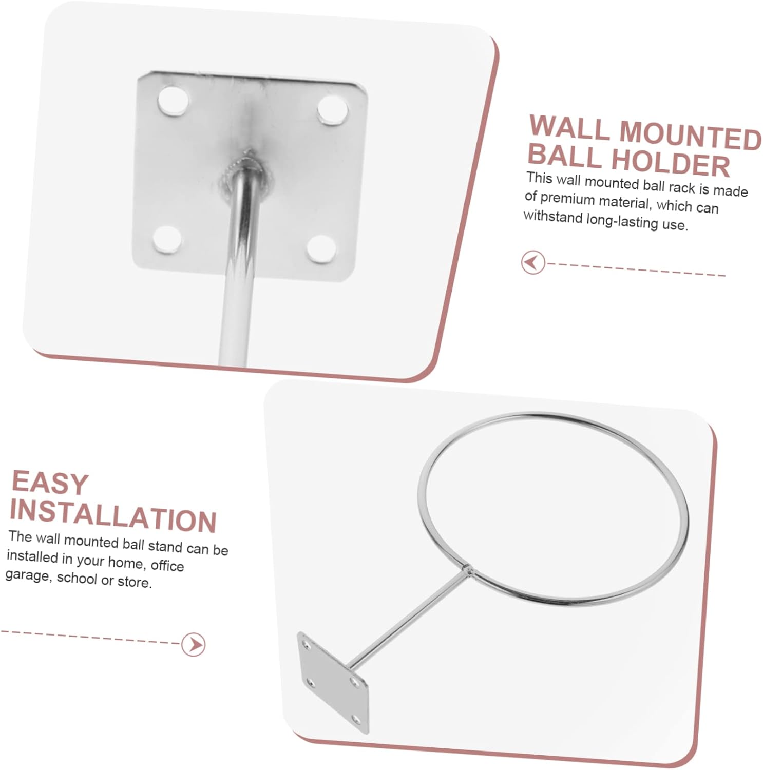 Package Include 6 x Ball Holders Features -Color:As Shown ball shelf organizer -Note: The product comes with screws storage shelves. -Material:Iron wall mount basketball holder -Size:25.00X15.00X15.00cm/9.82X5.89X5 balls holder. - It is made of iron material, strong and practical, and can be used for a long time basketball display -mounted basketball rack. - Suitable for display and storage of helmets in homes, bedrooms, living rooms, shopping malls, shops, exhibition and other occasions wall mount hat rack. - Safe and durable, sturdy and wear-resistant, and help you better display balls rack. - Used to display basketball, football, rugby, etc, and can bring much convenience to you basketball displaying rack. - It is manufactured with professional technology to ensure the durability of the products and can work for a long time exercise ball holder.Goods Descriptionballs display rack This is a ball storage rack, mainly made of iron material, sturdy and durable, safe and practical, which can well meet your storage and display needs and bring you more convenience.wall mounted soccer stand Made with delicate craftsmanship, it has good durability and strong practicability