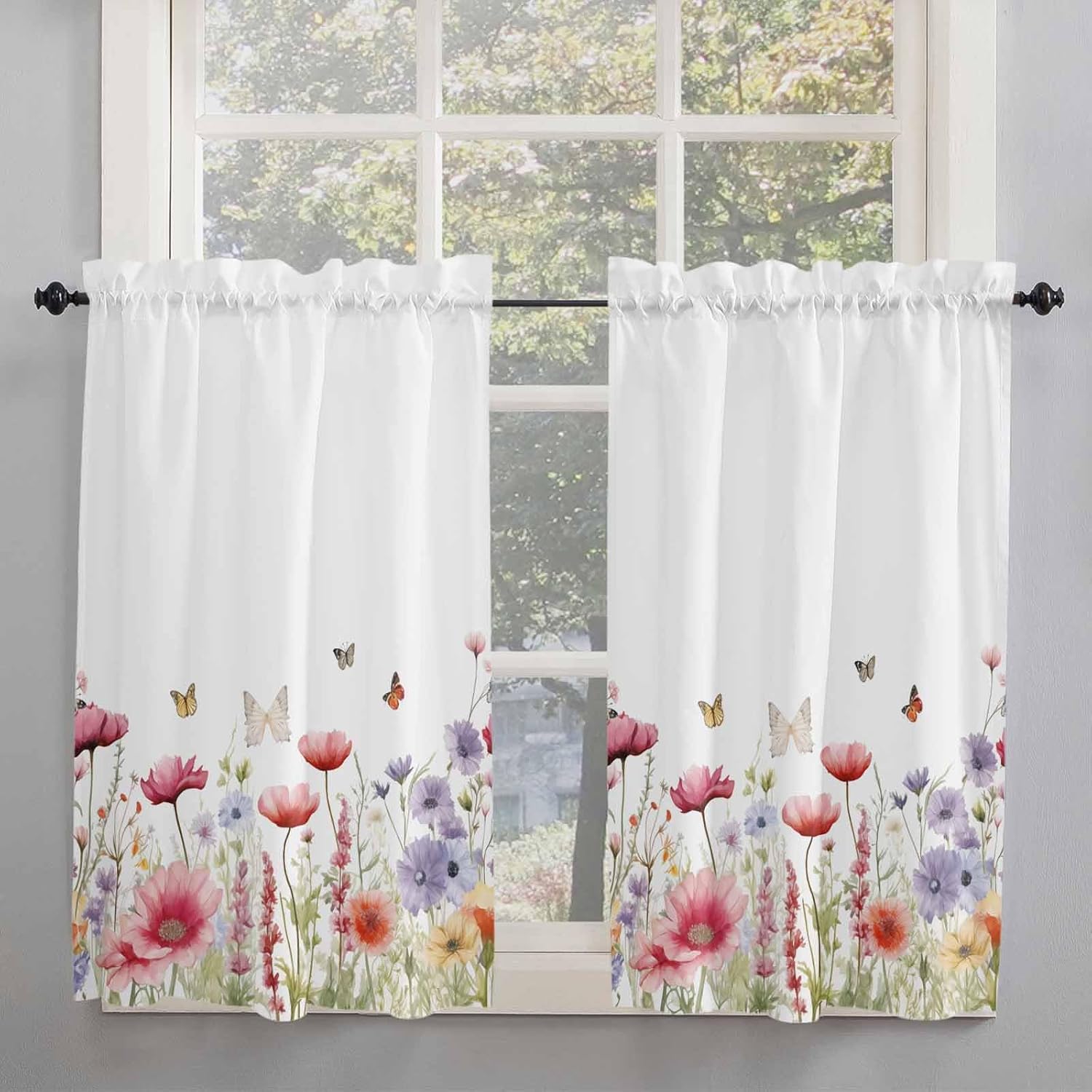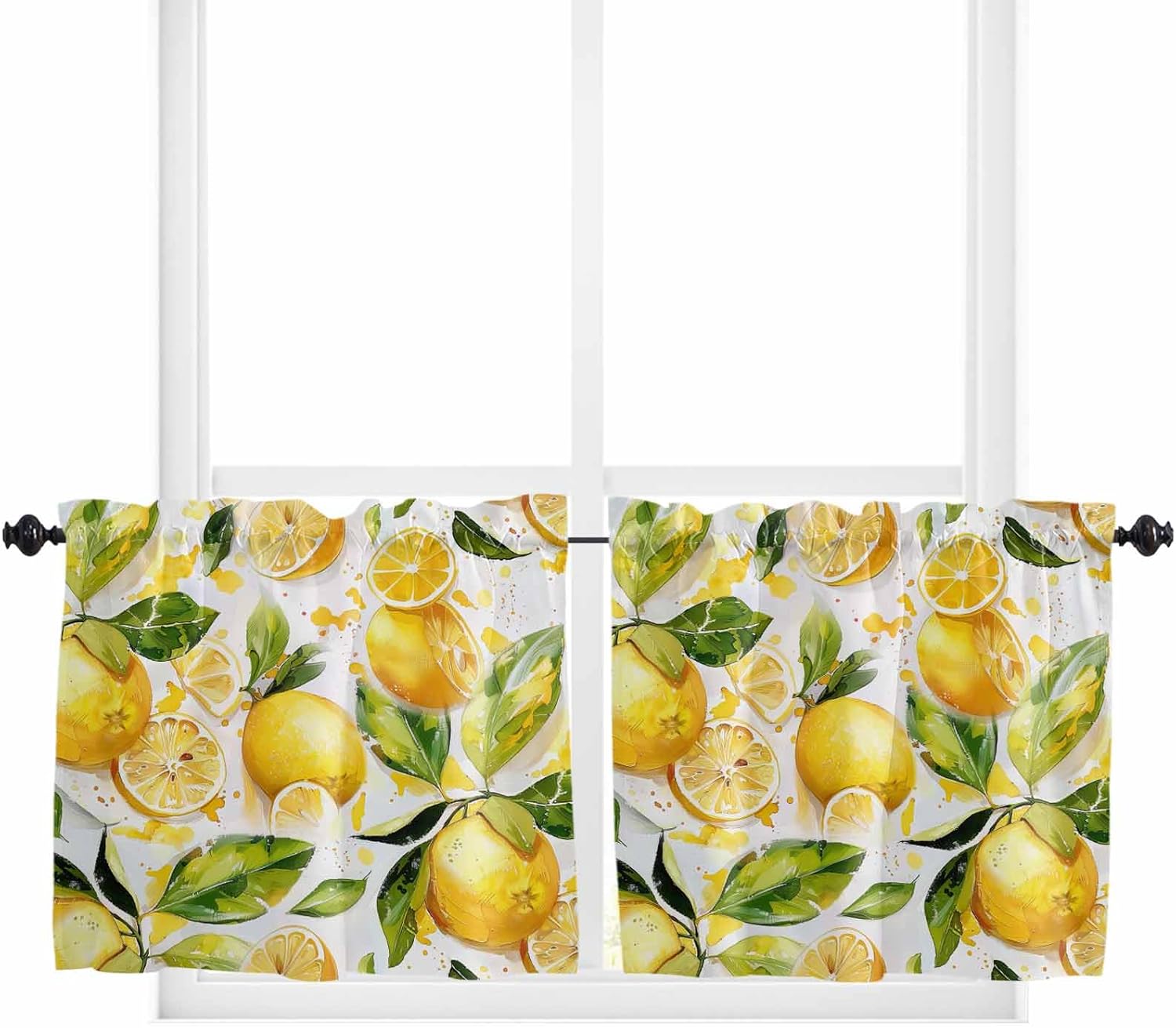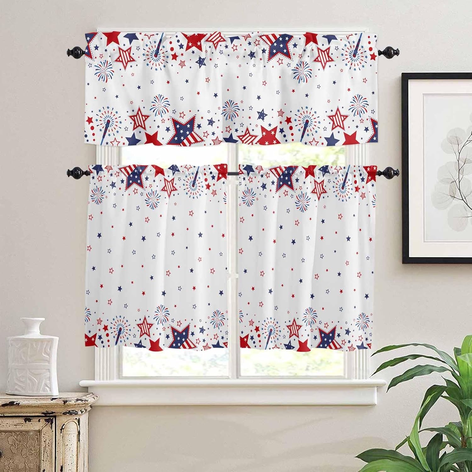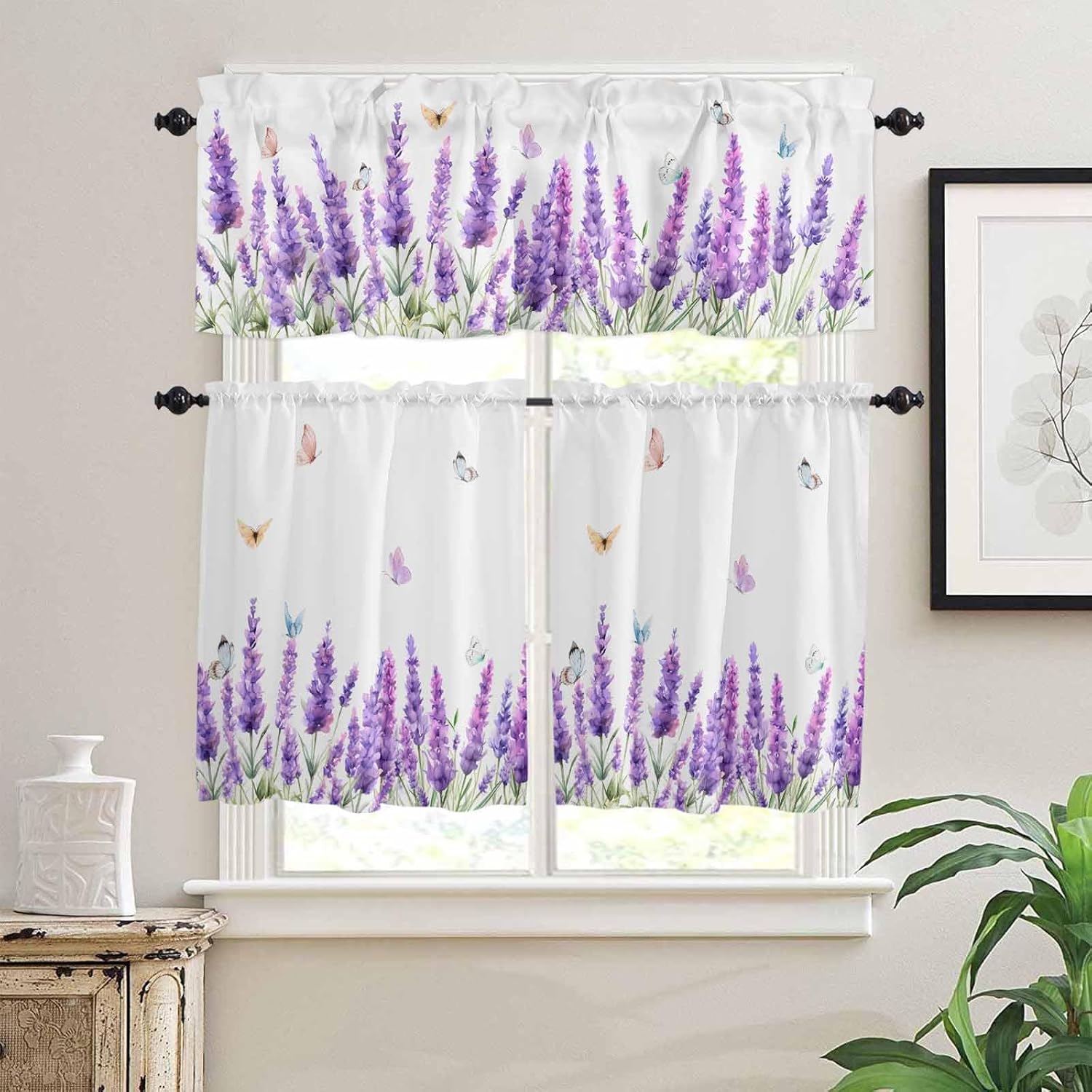 3 PCS CURTAIN SET 2 sizes are available: 🌸Valance Measurements: 54 Inch Wide by 18 Inch Length. 2 Curtain Tiers: Each curtain Tier Measures 27.5 Inch Wide by 24 Inch Length. 🌸Valance Measurements: 54 Inch Wide by 18 Inch Length. 2 Curtain Tiers: Each curtain Tier Measures 27.5 Inch Wide by 36 Inch Length. GOOD PRIVACY Kitchen curtain valances will provide you the necessary privacy and allow just the right amount of light into your room. ROD POCKET The pocket holes are large enough for most rods in the market, easy installation and move. Premium quality printing ensures vibrant colors and long-lasting durability. GOOD PERFORMANCE Short and small curtains perfect addition to your kitchen, loft, laundry room, guest bathroom, farmhouse, living room, dining room,office, cafe,hotel or other public place, add a refreshing charm to your small window.