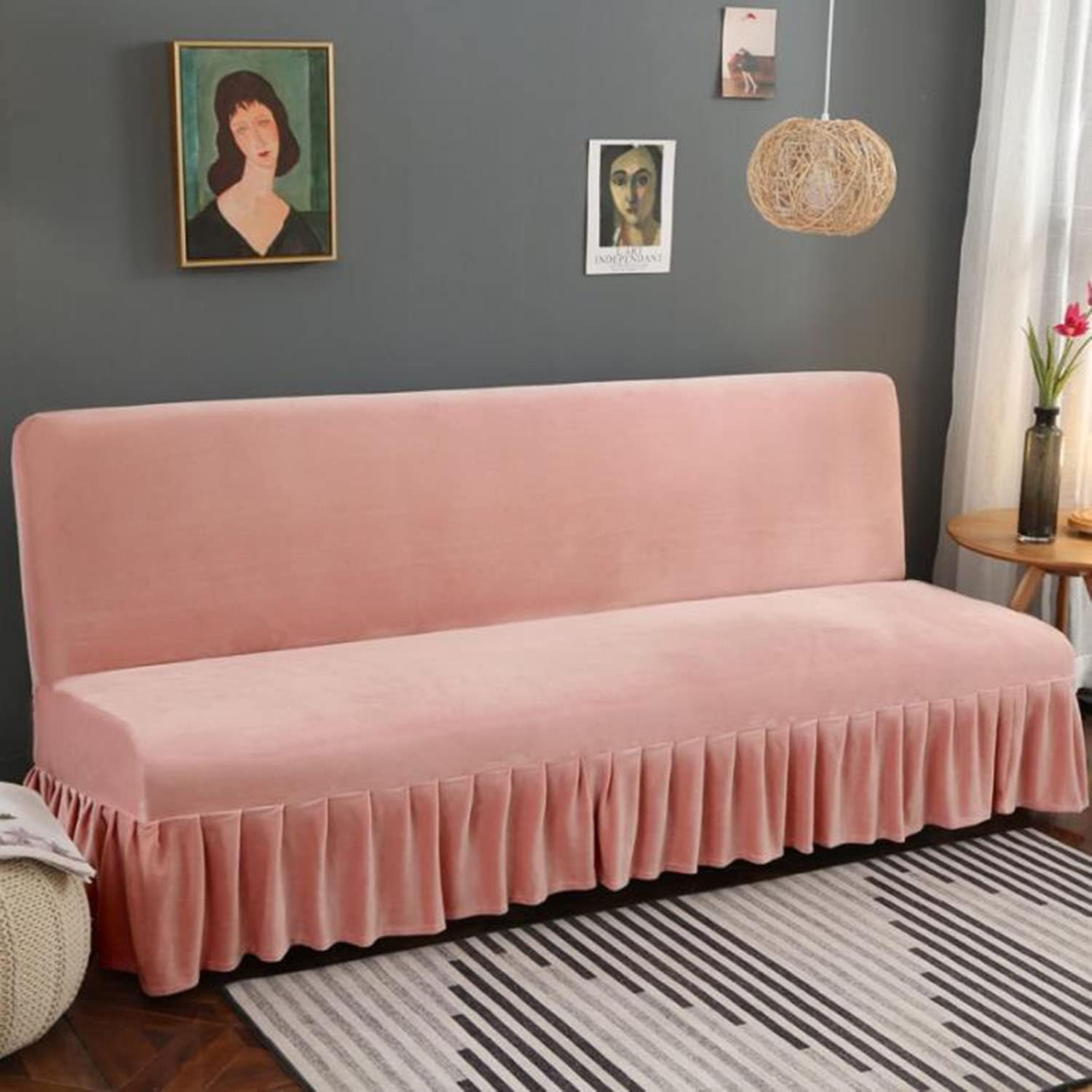 It's perfect for homes with children and pets.Water and dust prevent will make your furniture more fresh and clean.Product parameterModel Number: Sofa Bed SlipcoverMaterial: VelvetColor: As the picture shownProduct Care: Machine washableStyle: Modern simplicityUse Scope:Home,living room,Resistant Furniture Protector Sofa,Indoor Outdoor.Applicable sofa length size (approx.)1)Small: 47.2-55inches/120-140cm2)Medium:59-67 inches/150-170cm3)Large: 70.8-78.7 inches/180-200cmPackage:1 x Armless Futon CoverStays In Place:This plush slipcover is anti-slip with an elasticized bottom, which can secure the cover in place and avoid shifting.Care Instruction:Wrinkle-free for easy maintenance. Machine washing in cold, do not bleach, tumble dry low, and no iron.A warm reminder that always washes before initial use, especially for dark color covers.Note:Before you buy, please read our dimension chart carefully. Normally, the size of a sofa cover should be slightly larger than that of a sofa.