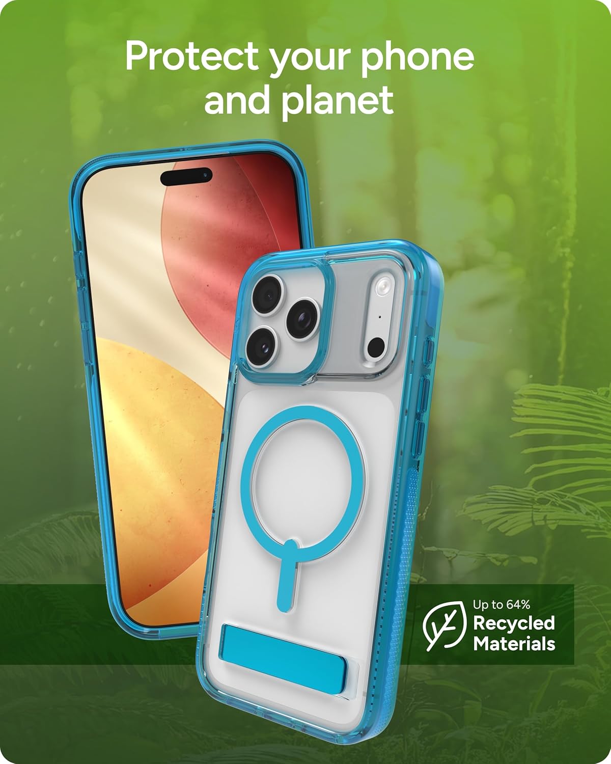 Optimal Protection for Your iPhone Show off your iPhone with the ZAGG Santa Cruz Snap, the slim, transparent case with pops of color that highlight your phone’s design. Drop‑resistant up to 13ft (4m)*, it’s made with Graphene, harder than a diamond and up to 200x stronger than steel, for dependable protection without extra bulk. The integrated kickstand folds flush with the case and securely holds your phone in both portrait and landscape mode for hands‑free use.Santa Cruz Snap blends style and functionality with a sleek, lightweight profile that fits easily in your pocket and comfortably in your hand. ClearGuard anti‑yellowing technology keeps the case beautifully clear, while textured edges provide a secure, no‑slip grip. MagSafe‑compatible, it works with magnetic accessories like wallets and ring grips, and supports wireless charging without removing the case.Finished with a durable anti‑scratch coating, Santa Cruz Snap is made with up to 64% recycled materials** for sustainable, stylish protection you can feel good about. From drop protection to hands‑free convenience, it’s the case for iPhone lovers who want to combine standout design with advanced technology. *Mil Std 810G 516 **2 Recycled material content is verified by an independent third party.