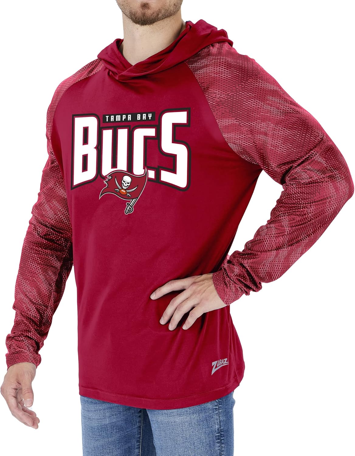 Pullover lightweight hoodie, tonal team color viper print sleeves, 88/12 Poly/Spandex, NFL team logo